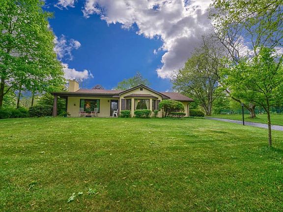 Atop a hillside private setting sits this rock solid custom built sprawling ranch on 1.1-acre lot. Boasting over 2300 SF with spacious rooms throughout. 3-large bedrooms, living room with fireplace and built-ins, a formal dining room with corner set built-in china cabinets, plus a family room all tied together with a generous eat-in kitchen. A huge functional mud room with abundant storage and a comfy breezeway. A heated and fenced private in-ground pool sets the tone outside the home. Covered front porch, rear patio overlooking wooded ravine. Plenty of green space for all outdoor activities as well. Many owner improvements and amenities: hardwood floors, newer encased windows, furnace (2014), natural gas heat, Delco Water, aeration, over sized 2-car side load garage, and more!