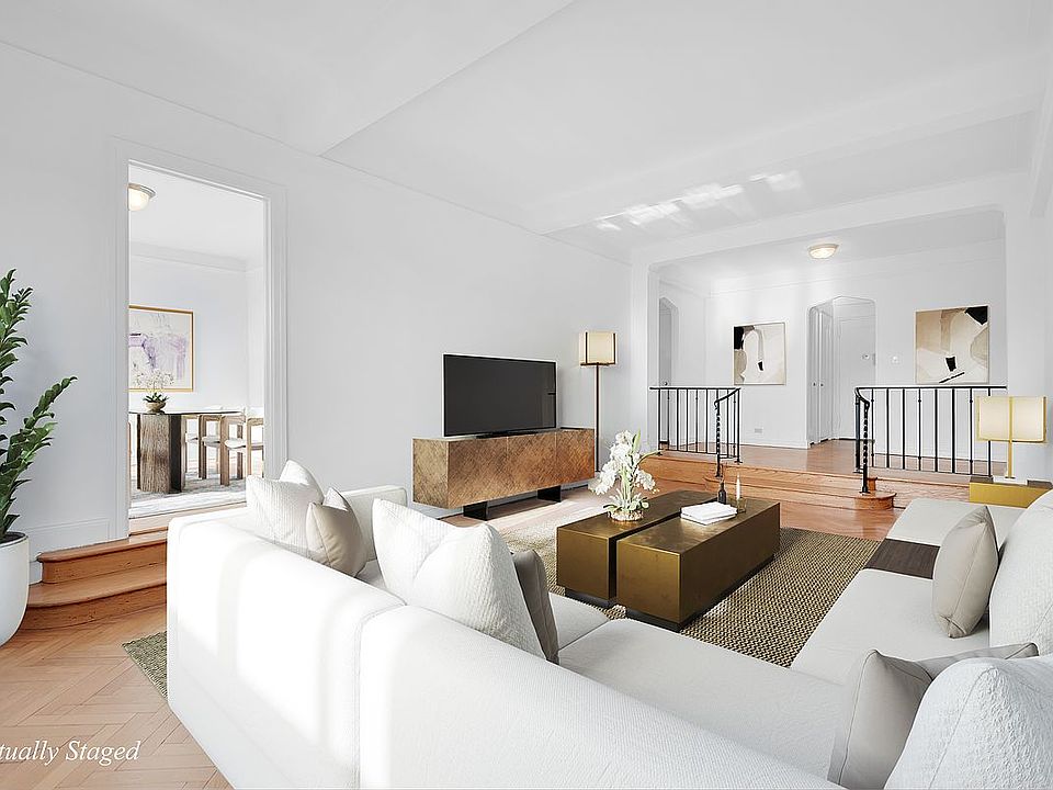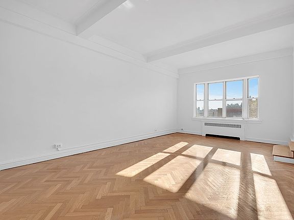 Generous layout with oversized rooms. Sunny, south and west exposures. Handsome hardwood floors and high, beamed ceilings throughout! Abundant closet space. Entry hall has two large closets and leads to a large foyer or dining area that opens to the elegant sun-filled sunken living room. Extra large primary bedroom boasts two capacious closets. Sizable second bedroom works equally well as a dining room or home office. Windowed kitchen has new cabinets and appliances. Windowed bathroom with cast iron soaking tub.