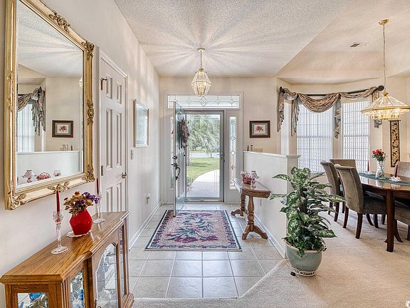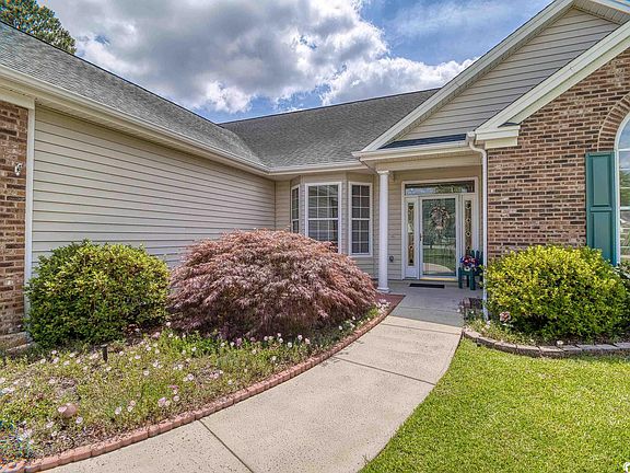 This immaculate, Charleston floor plan on quite cul-de-sac in Phase VIII of the highly sought after Myrtle Trace community with its very private tranquil setting invites you to live your best life in this 3 bedroom 3 bath home with oversized 22x24 2 car garage, the garage features lots of storage with pull down steps, a utility sink and side door to yard. Inside you will find a true split bedroom plan with 2 extra bedrooms & baths on your right, the back bedroom has attached bath, there is also a hall bath with walk-in shower, 2 linen closets and a pocket door for even more privacy - great space for an in-law suite.  Moving on to the  other side of the home, you will find the primary bedroom with ensuite bath which features  both a walk-in shower and jetted tub; there is a large walk-in closet, linen closet, tray ceiling with ceiling fan and large sliding glass door out to your very own amazing oasis. Back into the main living areas you will find the dining room with tray ceiling, large living room with ceiling fan opens into the Carolina room with walls of windows and amazing views of the lake. The large kitchen features plenty of cabinet and counter space, tile floor, ceiling fan, nook over looking the pond; the large 8x8 laundry/mud room has large utility closet, cabinets and convenient access to the garage. Don't miss the community club house, pool w/cabana, bocce court, shuffleboard, horseshoes & 1/2 court basket ball court in this very active community. You can be as active as you like or do nothing at all.  Located close to restaurants, shopping, hospital, doctor/dentist offices and so much more! Schedule to see this one before its gone.