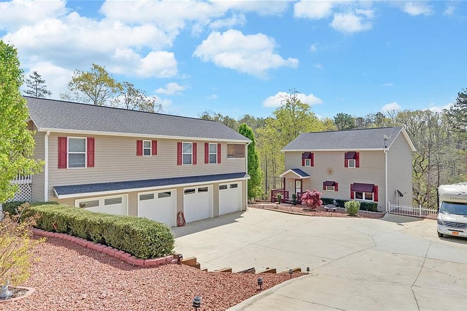 You found it! The property with enough room for everyone! The 4 car garage features a large 2BR, 2BA apartment. The main house is 3 levels with 3 decks facing the lake. They are both currently rented. There is a dock in place and the home has easy access to I-85. There is a boat ramp just down the street. With this much room, the whole family can come visit. You'll have to kick them out to get them to leave!