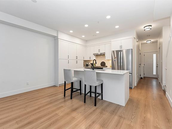 Open House: Sat Nov 8, 2:00-4:00 PM. Welcome to your new home in Royal Bay! This 3-bed, 3-bath corner-unit townhome is in one of Colwood's most sought-after seaside communities. Built in 2023, it still feels brand new with a 2-5-10 new home warranty and move-in-ready condition. Open-concept layout with 9-foot ceilings and upgraded laminate flooring. Modern Kitchen features quartz countertops and stainless steel Whirlpool appliances (including a natural gas stove). High-efficiency gas furnace, and on-demand hot water. Garage + driveway parking, with a Level 2 EV Charger ready for your EV. Come make it your destined home!