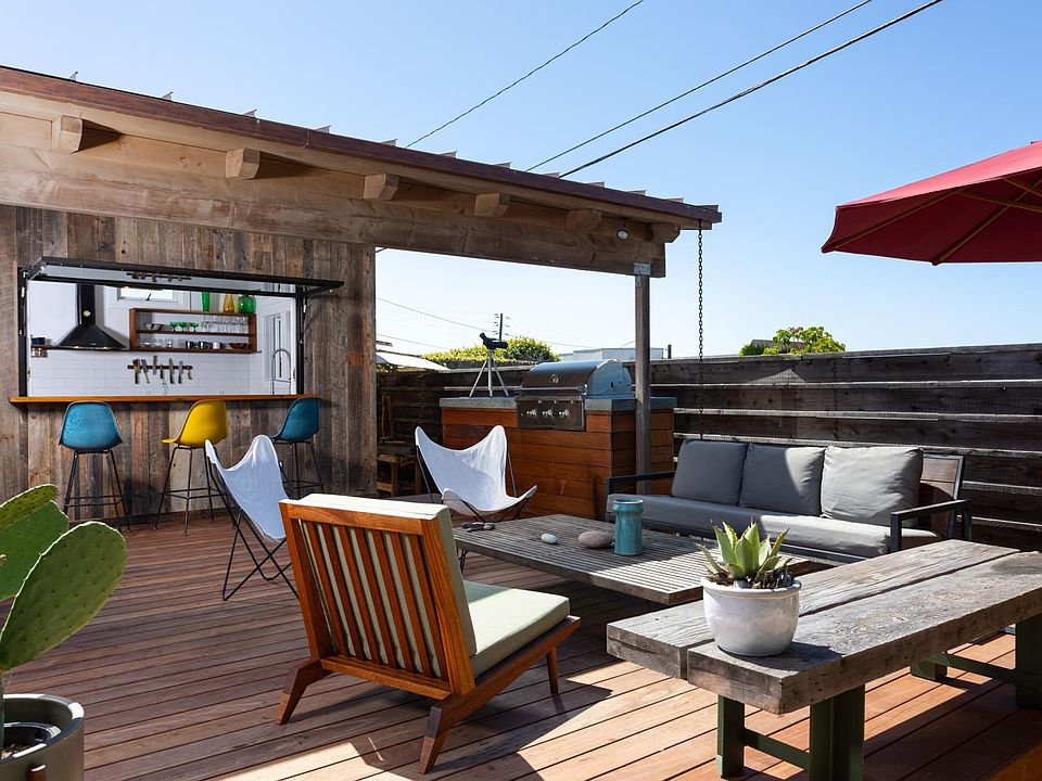Vintage beach lifestyle in this immaculately curated ocean-view home situated steps from the Pacific in the heart of Laguna Beach. Located minutes from legendary surf, beaches, fine dining, entertainment, and award-winning schools. Step inside to find a quintessential SoCal beach paradise loaded with timeless features including a-frame ceiling, radiant heat system wood floors, ample picture and casement windows, wood accents, expansive large IPE deck with built in gas BBQ, several patios and decks perfect for entertaining, dining al-fresco, enjoying afternoon refreshments, and experiencing endless summer sunsets. The updated kitchen is made for hosting and features large Liebherr fridge, Bertazzoni stove, chef's kitchen island, pass through window from kitchen to bar seating, farmhouse sink, and top-tier stainless steel appliances. Entertain in the spacious living room that opens to the outdoor patio ideal for indoor/outdoor living. Included is a detached unit which is ideal for family members, guest or a remote work space. Relax and enjoy the crashing waves in the large primary master-suite with picture windows, hardwood floors, ample closets, and artful bathroom with walk-in shower. This stylish Laguna home offers modern comfort in a classic beachside environment. Property comes furnished and includes water, electric, gas and gardner. Owner pays all utilities except WiFi/Cable. Owner pays Gardner