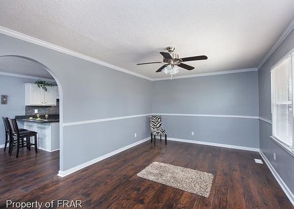Remarkable remodel! Just minutes from base and on a quiet dead end street. Inspection complete and repairs done. All brand new flooring, paint, fixtures, roof, and more! Archways lead to a kitchen with granite counters, SS appliances, mosaic backsplash, breakfast bar, and track lighting. Wonderful tile job in both bathrooms. Master has tiled shower with human car wash jets! Spacious family room overlooks backyard. Fenced in backyard with a big deck. You will love this home!