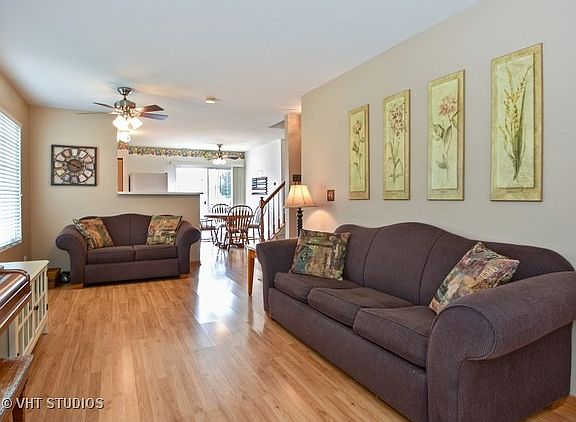 Carrington Model features three bedrooms, second floor laundry and a large fenced yard. No neighbors behind the home provides extra privacy. Enjoy the sunset on your private patio. Upon entering this lovely home you will notice how the home fills with natural light. Well maintained by the current owners, truly move in ready. Table space in the kitchen has access to the sliding glass doors to enjoy the outdoors. Community has additional guest parking areas. Convenient location for community events, access to the interstate and plenty of shopping/dining.