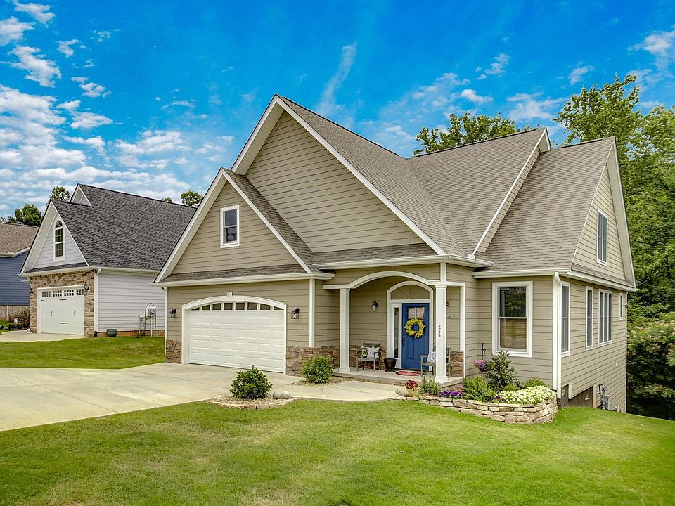 Stunning 4br/3ba with bonus that could be 5th bedroom. Only 2 years old and custom built by Styles Builders a Premier builder in the upstate. Combination great room and dining room, very open floor plan. Beautiful kitchen with large island and granite countertops, stainless appliances, gas ..free standing stove. MASTER ON MAIN with 2 closets, large tiled shower in bath and double vanities. 2 large bedrooms upstairs with bonus that could be 5th bedroom. Basement has large den and separate bedroom with full bath. There is a separate entrance for basement that could be an in-law suite. There is a safe room in basement that can be used for storage. There is a 3rd garage for a golf cart in basement area or used for storage. Across the street from Smithfield Country Club where you can join to swim, tennis, pickelball, and golf.