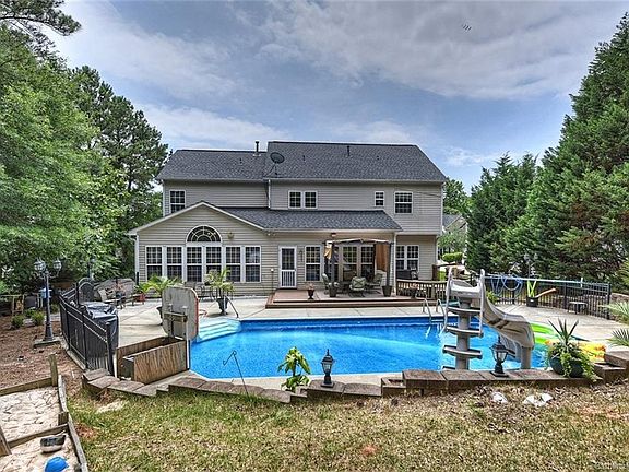 Looking for a pool home this summer? Fabulous floor plan with 5 bedrooms, 3.5 baths and amazing lower level floor with huge family room with fireplace, sunroom, kitchen with island and breakfast area, formal LR and DR, powder room and laundry and lower level office. Fantastic back yard with an inground pool and private back yard with swing set, sand box and multiple deck areas. This is one of the largest lots in the neighborhood and is very private with a resort like back yard. Floor plan is light, bright and very open with lots of windows and natural light. All rooms are very spacious. Great curb appeal! Three car attached garage and SO MUCH additional storage. Built in storage cabinets in the garage and amazing over car storage area in 3 car garage. So much additional storage upstairs too. Top ranked Fort Mill schools and easy access to I77 either via Sutton Road or Hwy 160. Great schools and low South Carolina taxes.