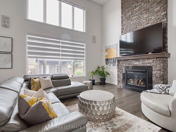 Remarkable 3,024 sq. ft. custom-built luxury home without the custom built price! Its stunning curb appeal showcases a brick-and-stone façade, exposed aggregate oversized driveway, and 2.5-car garage. As you step through the grand 8' double doors you're welcomed with soaring 18' ceilings and oversized windows that flood the home with natural light. You'll immediately appreciate how every architectural detail was designed with luxury, flow and function in mind. The Chefs kitchen with an oversized 6-person island offers every upgrade imaginable, including a 3 glass panel sliding door to the backyard and an incredible servery with a walk-in pantry that seamlessly connects the kitchen to the formal dining room. The focal point of this magnificent house is its breathtaking family room that features a 2-storey wall of windows and a floor-to-ceiling stone mantle provides a sense of tradition and grandeur. The central oak centre staircase leads to a spacious upper gallery overlooking the foyer, connecting three generous bedrooms all with w/i closets and a laundry room large enough to convert into a fourth bedroom. The primary suite features tray ceilings, a walk-in change room and a large ensuite with soaker tub, glass shower, and dual vanities. The finished basement extends the living space and and providing a self-contained 1375 sq. ft. in-law suite, complete with kitchen with pantry, a 3pc bathroom, gym, laundry, storage and a bedroom perfect for multi-generational households. The spacious and private backyard is perfectly landscaped with 12x24 covered patio, custom built shed, exposed aggregate walk-ways, inground sprinkler system and a hot tub. Located close to Cardinal golf course, Coyle Creek, Welland River, beautiful parks, trails, School (including French Immersion), shopping, this family home has it all with no expense spared.