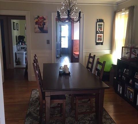 1 st floor 2 bedroom unit of 2 family in Oakley Country Club area, Common St. Short walk to Cushing Square in Belmont. Near local buses, easy access to Alewife, Harvard Square, etc. 5 rooms.....living room with high ceilings and ornamental fireplace and original gumwood detail, dining room, pantry, kitchen, 2 bedrooms, bathroom, basement storage and washer/dryer hookup, back porch, shared front porch. Garage spot and additional spot outside of garage. Hardwood floors and ceramic tile flooring in kitchen, newer windows & appliances. Cat ok..............NO DOGS..............NO SMOKING...1/2 months broker fee. Available March 1..............First and Security deposit required