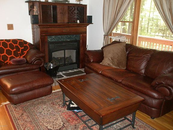 Cozy Pocono Ranch nestled in the woods. Perfect for a starter, retirement or vacation home. Home features HW floors, updated bath with jetted tub, propane fireplace for those cold winter nights and large deck to enjoy nature. All situated on almost 3 acres in a quiet no dues community. Don't wait to see this one! Schedule a showing today!