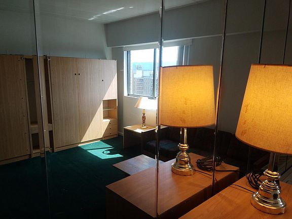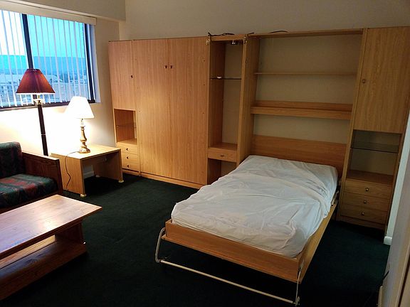 1 person or 2 people, Penn Tower High Rise 12th Floor, Furnished Efficiency, with Full Kitchen and Full Bathroom, Walk-in Closet, Wall-to-wall carpet, Dishwasher, Full Sink, Full Refrigerator, Microwave, Plenty of Kitchen Cabinets, Downtown, 1 Block to Campus, 300 yards to HUB, All Utilities included (Electricity, Heat, A/C, Water, Trash, Recycling), Fully Furnished, Murphy Beds provide extra space, great view (top floor - no one above you), pleasant, secure, quiet, building, laundry on first floor. 1 year lease, security deposit = 1 month rent, no pets, no smoking