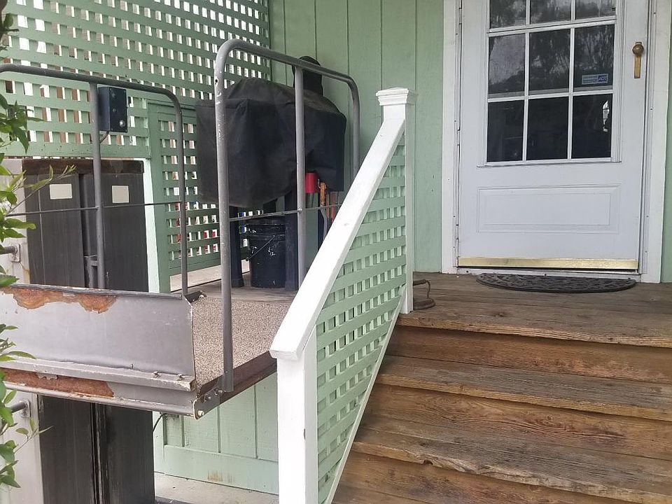 Totally remodeled with sheet rock walls with Bull nose corners, laminate and tile floors, ceiling fans with lights, sky lights, custom kitchen cabinets, dual pane windows and can lights. Wired for surroud sound with built in speakers. 2 storage sheds, one with roll up door and lots of lights. Other added onto back of unit. Very nice patio area with access for little dogs from Master bathroom. Chair lift at front door. Very deep carport for 3 cars.