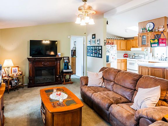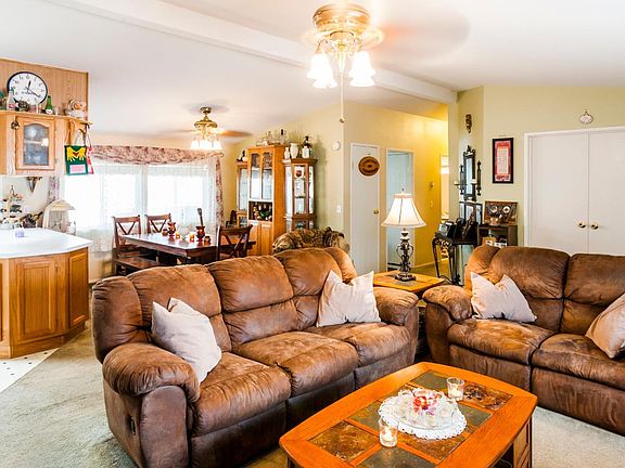 Come see this spacious 3 bed 2 full bath PLUS LARGE office! 16 years new with vaulted ceilings, 5 ceiling fans, skylights, dual pane windows, stucco walls, indoor laundry hookups, kitchen pantry, storage shed, low maintenance yard, room to park 3 cars in driveway and more! Located in a well maintained, all age park with a gorgeous clubhouse that has a kitchen with 2 stoves (free for use to residents), swimming pool, tennis courts, pool tables, basketball hoops and RV/boat storage on site for $40 per month.