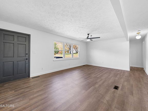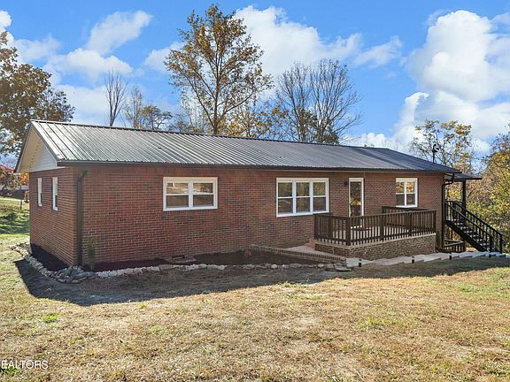 Check out this beautiful brick rancher boasting stunning mountain vistas! Nestled in a serene and picturesque neighborhood at the base of the Cumberland Mountains, this home is nestled on a generous 1.34 acre lot that stretches from one end of the road to the other, and features a spacious detached garage. Upon stepping inside, you'll immediately notice the remarkable recent renovations and meticulous attention to detail. This home truly shines. The expansive living room offers ample space and is bathed in natural light streaming through three windows framing in the mountain views. New luxury vinyl plank (LVP) flooring graces the entire home, enhancing its charm. To the right, you'll discover a sizable formal dining room and an amazing all new kitchen, complete with quartz countertops, stainless steel appliances, and sturdy oak cabinetry. Additionally, one of the bedrooms is situated on the right side, making it an ideal home office if a third bedroom is not necessary. On the left side of the home, you'll discover a completely remodeled hall bathroom featuring tile flooring and all-new fixtures, including a vanity, toilet, and bathtub. The master bedroom and ensuite are simply stunning, with abundant natural light creating a serene retreat. The third bedroom completes the left side of the home. For those seeking more living space, consider finishing the basement or just utilizing it for extra storage. Outside, the meticulous landscaping and the addition of new black gutters and downspouts showcase the wonderful attention to detail. A charming covered porch provides the perfect spot to soak in the breathtaking views. Conveniently located just minutes from Norris Lake and ATV trails, this property invites you to experience the beauty of the East Tennessee outdoors. Don't miss the opportunity to schedule a private tour - call today!