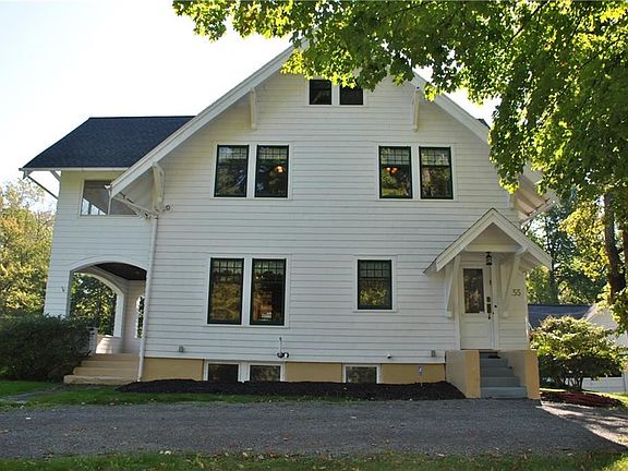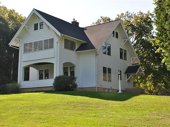 OPEN SUN 9/27 2-3...This tranquil 1.4 acre estate will make you think you're miles away from everything, when really you're just steps to Pittsford Plaza, Wegmans and the Village of Pittsford. You won't believe the serenity that this property offers including breathtaking views from every window, hundreds of mature trees, sparkling inground pool and a beautiful meandering creek. Tons of natural light in the sprawling rooms make this a wonderful home for entertaining! Bright kitchen with adjoining butler's pantry flows into a beautiful dining room with coffered ceilings. Tons of period woodwork, a window seat and gas fireplace adorn the majestic living room. Upstairs find 4 large bedrooms and 1.5 updated baths plus a relaxing sleeping porch and full attic. The basement offers a secondary kitchen space and convenient garage walk-out. Plus an additional detached 2-car garage, tear-off roof in 2015, 2007 furnace and 2013 AC... All located in the popular Long Meadow neighborhood.