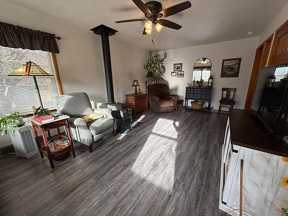 This beautifully updated 2-bedroom, 1-bathroom home is ideally located just a short walk from downtown & nestled close to the park. This property has been thoughtfully refreshed w/new flooring & fresh paint throughout, as well as brand-new countertops in the kitchen. The home sits on a double lot, providing ample outdoor space & privacy, w/ a fully fenced yard that's perfect for pets, gardening, or outdoor relaxation w/ BBQ cover & cooking area. Large workshop w/pellet stove, addtl. outbuilding great for a greenhouse and a garden tool shed for ample storage. Fruit trees. With a new roof, this home is in excellent condition & move-in ready. Don't miss your chance to own this well-maintained gem w/plenty of room to grow!