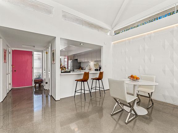 2 Bedroom, 2 Bath Twin Home located in South Palm Springs. 28 Unit complex in Mid-Century neighborhood designed by famed Architect William Krisel. Vintage Mid- Century architecture including vaulted ceilings, celestial windows, polished concrete floors throughout. Approximate 1,200 square feet of living space. Also large rear patio with southern exposure overlooking expansive lawns, community pool/spa and dramatic mountain views. 2 minutes from downtown Palm Springs including restaurants, shopping, museums, galleries, Design District, wine tasting, Palm Springs Tennis Club & more. Includes all appliances, W/D, A/C, Tankless water heater, covered parking. Year-Round Lease, unfurnished. Small Pet OK. Available in Mid-March. $3,500 per month + Security Deposit. No Smoking, Pets OK, small dog or Cat. Owner pays for Water & Trash pickup. Plenty of street parking for visitors.