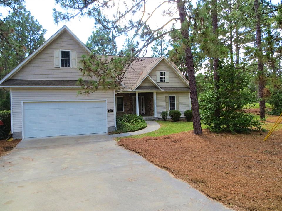 Craftsman style home nestled in the pines and on the Hyland Hills Golf Course! Quiet neighborhood, private road, yet only a 4 minute drive to Downtown Southern Pines! Lots of WOW and upgrades- hardwood floors thru out the main level including all bedrooms. Master bath has oversized walk in shower and custom shelving in closet. Stunning stone fireplace and vaulted ceiling in the living room. The kitchen features quality cabinets, stainless appliances, granite counters, and a separate eat in area. Bonus room has separate HVAC (Split system) and plenty of storage. Back deck allows great entertaining while overlooking golf course. Firepit and planting beds too! Great VALUE for a ''newer'' house in a well established neighborhood.