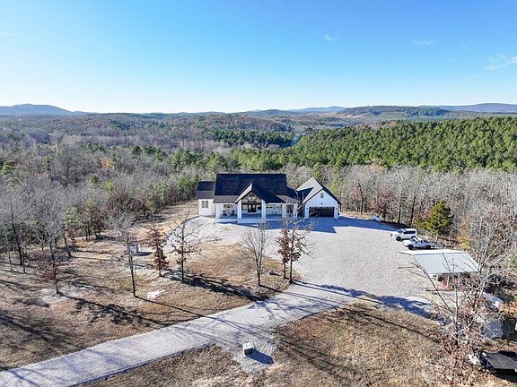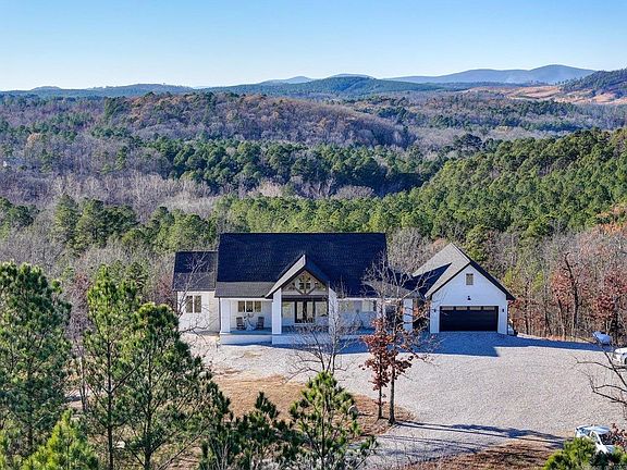 Luxury. Views. Privacy. Opportunity. This is more than a home-it’s a destination. Perched on 6 private acres with sweeping views of pristine undeveloped Arkansas landscape, this stunning like new estate offers a rare blend of luxury, privacy, and investment potential. The main residence features 5 beds, 3.5 baths and 4430sf of thoughtfully designed living space, ideal for both grand entertaining and comfortable everyday living. A separate guest cottage offers 1 bed 1 bath and approximately 700sf, perfect for visitors, multigenerational living, or short term rental income. Designed with versatility in mind, the bottom level of the main home offers a fully functioning kitchen, laundry area, and additional bedrooms/bathroom, all opening directly to the pool. Expansive outdoor living areas showcase a resort style 18x36 pool and hot tub, perfectly positioned to capture breathtaking sunsets stretching from corner to corner. With approximately 5130sf between the main home and guest cottage, the layout provides flexibility, privacy, and exceptional hosting potential. Located just minutes to Lake Ouachita, Blue Springs-home of the famous AR Crystals, and Hot Springs Village.