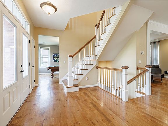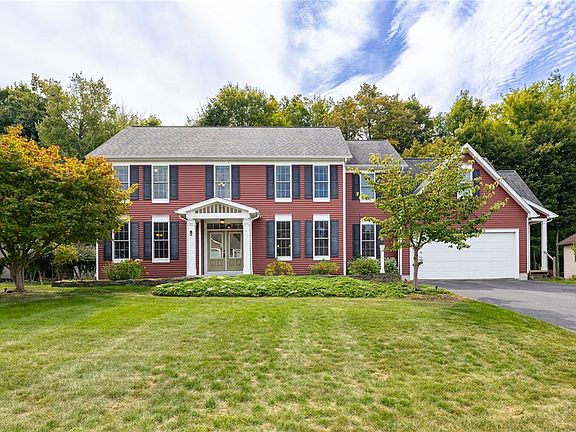 Beautifully updated and maintained 5 bed, 3 and 1/2 bath ,traditional style home. This home features a chef's dream kitchen with updated, cherry cabinetry, a huge 9 foot island and stainless steel appliances. The open floor plan with tall ceilings makes it easy to communicate and see others. Hardwood floors thoughout the first floor with slate tiles in the mudroom, first floor laundry and powder room. The hardwoods continue up the stairs to the landing/hallway and primary suite. The primary includes a huge walk-in closet, and a spa like bathroom with double sinks and a shower with rain and body sprayers. The bedroom above the garage was converted into a movie room in 2017. Whole house speaker system.The large, 2 and 1/2 car garage comes with an overhead storage system. The tall , 13 course basement with egress windows and a roughed in bath are waiting for your personal finishing touches. In the back, you will find a park like setting with a beautiful, two level, trex deck and a large shed. Solar panels with a battery backup were installed in 2017. Notable updates - Vinyl siding - 14', tankless water tank - 21', trex deck - 23'.Welcome home! Delayed Negotiations on 9-26-25 @ 9am.