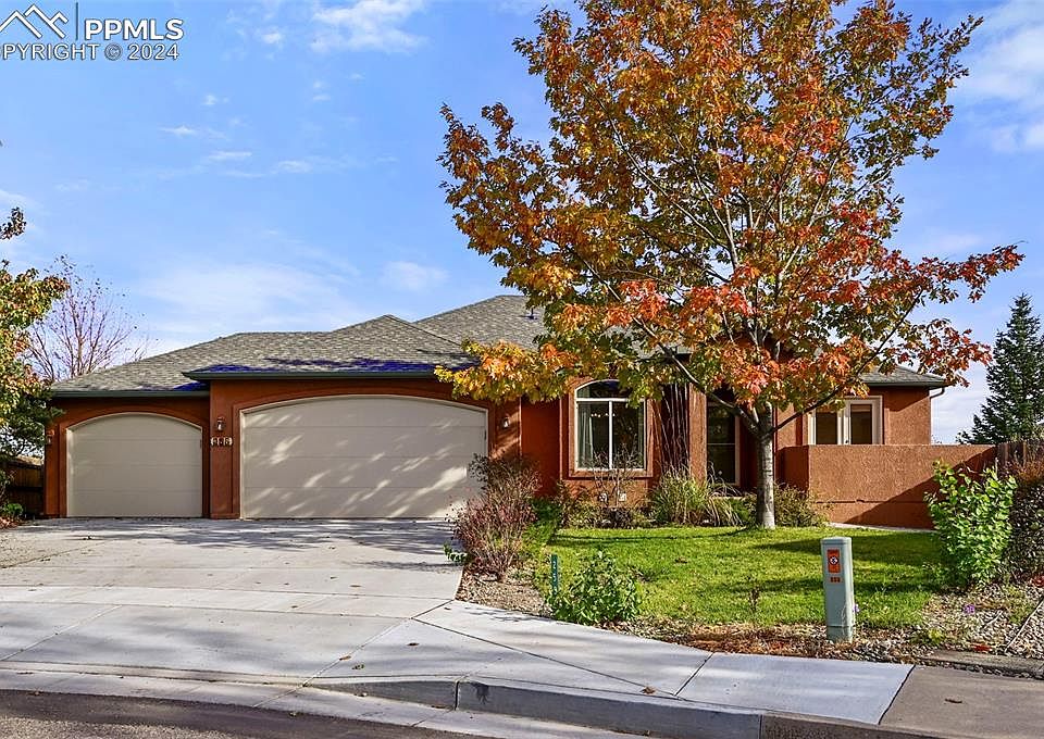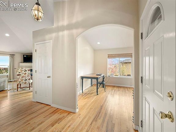 ***Stunning Ranch-Style Home with Breathtaking Views** Nestled at the end of a peaceful cul-de-sac, this charming ranch-style home has been lovingly maintained by a single owner. Enjoy sweeping vistas of downtown, Pikes Peak, and Cheyenne Mountain from the comfort of your own home. Step inside to discover beautiful hardwood floors that flow throughout the main level, complemented by vaulted ceilings and an inviting open floor plan. The bright great room has a gas log fireplace and unobstructed views, making it the perfect gathering space. The spacious kitchen seamlessly connects to the great room and offers a convenient pantry, cozy dining nook, and easy access to the covered deck—ideal for outdoor entertaining. Retreat to the primary suite, where you'll find ample space, abundant natural light, a walk-in closet, and a luxurious 5-piece bathroom. This level also includes a second bedroom, a full-sized bathroom, a formal dining room, a private office, and the first laundry room. Venture to the lower level to find a large family room, complete with a second fireplace and wet bar, plus a walkout to the beautifully landscaped backyard. This floor boasts three additional bedrooms, two more full-sized bathrooms, and a second laundry room. The meticulously maintained outdoor space allows you to fully appreciate the stunning surroundings. Additional highlights of this home include main-level living, central air conditioning, 5-bedrooms, 4-bathrooms, 3-car garage, a shed and did we mention the views?! Don’t miss the opportunity to make this exceptional property your own!