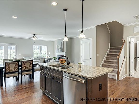 The "Forsyth" plan offers open concept, low maintenance living with hardwood floors, granite tops, walk-in pantry, 2 main level bedrooms, large laundry w/access to master bath & walk-in closet. 2nd floor with large bedroom/loft, WIC and 3rd full bath. Neighborhood pool! Covered porch! Save on closing costs using preferred lender and attorney. Call agent for details on stage of completion before showing.
