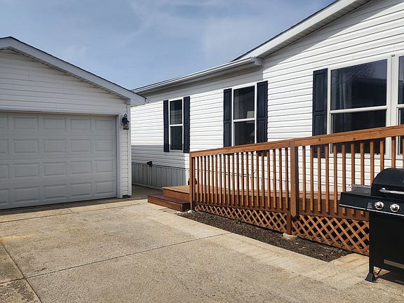 Introducing a luxurious and high-end oversized modular home, located in the prestigious Maple Brook 55+ community. This exceptional residence features all new elegant, up to code finishes and modern amenities throughout. Completely remodeled from the studs, showcasing the impressive arch ways, wheelchair accessible reframed doorways, vaulted ceilings and sky lights. The spacious open floor plan includes a gourmet chefs kitchen with high-end appliances, quartz "Night Sky" counters and island, custom maple slate cabinets and pantry. Beautiful wood vinyl flooring and carpet throughout with another full dining area for your convivence. The primary en-suite offers a private retreat with a spa-like Air Jet hot tub, separate shower and walk in closet. Very spacious second bedroom also boasts an attached full bathroom. Additional highlights include a cozy electric fireplace, ample natural light, new electric with all LED lighting (including some over door/window ambient lighting), and custom crown molding, doors and trim. Central air condenser about 1 year old, Roof approx 6 years old. Two car detached garage with concrete side drive and wheelchair accessible ramp. Clubhouse available for events and Bingo night! Don't miss this opportunity to own an exquisite modular home in a sought after 55+ community.