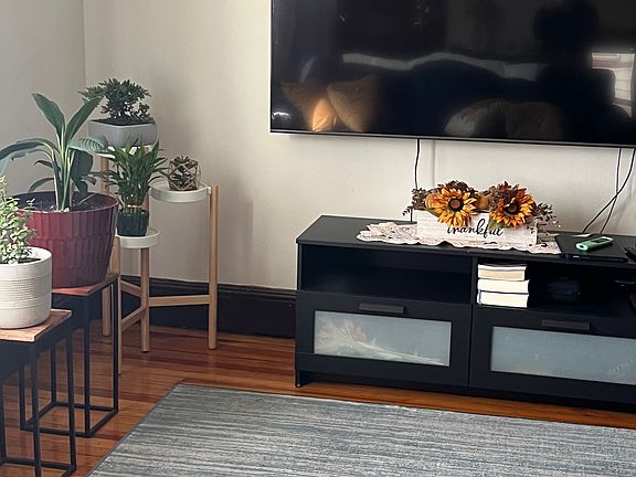 Apartment in 2F house in nice residential area close to schools and shopping. Apartment on 2nd and 3rd floor. Living room, dining room, kitchen with refrigerator and 2 bedrooms on 2nd floor an extra bedroom on 3rd floor. Hardwood floors throughout. Off street parking for a small car available. Laundry hook ups in basement.