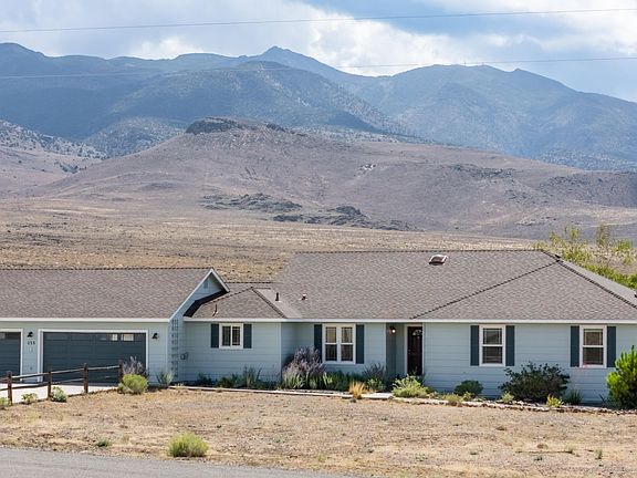 The home itself presents an inviting appeal. A long, oversized driveway leads to the home, arriving at a classic three-car garage. The house is a single-story ranch style with a charming partial wrap-around rear porch facing the southern hillsides. Much of the acreage is a blank canvas, with possibilities ranging from a private vineyard to a sprawling manicured lawn, a paddock for horses, or keep the high desert's natural presence. The deck provides the perfect spot for outdoor entertaining, outdoor cooking or swinging into the views on your porch swing.