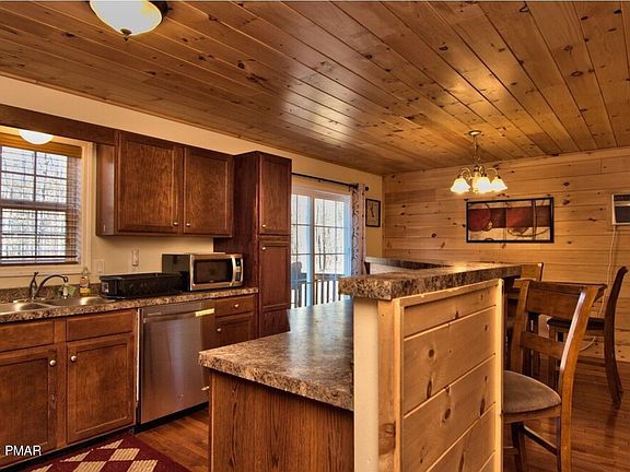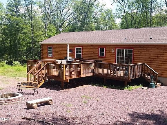ACTIVE STR- Welcome to your serene retreat nestled in the tranquil woods of the quiet community of White Haven Estates. This spacious 6-bedroom, 3-bathroom home offers the perfect blend of comfort and seclusion, making it an ideal haven for those seeking peace and privacy. The heart of the home lies upstairs, where a large deck awaits, offering enchanting views of the surrounding woods.