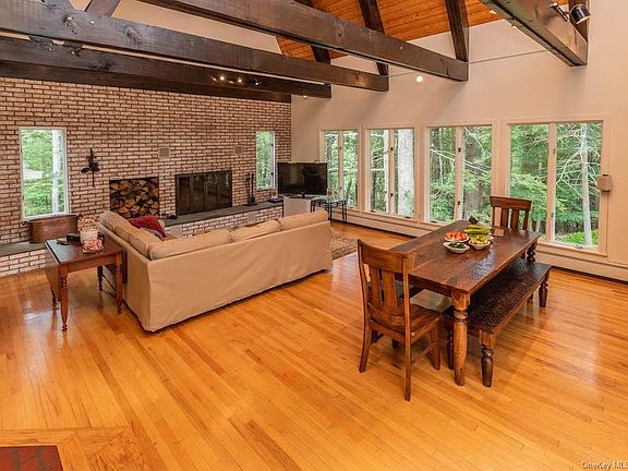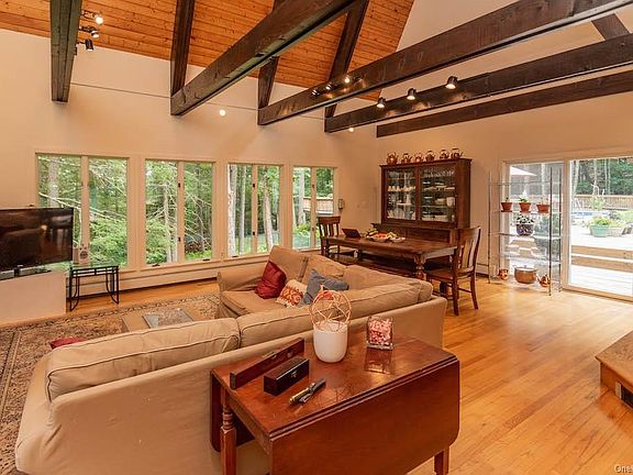 This one of a kind contemporary chalet features an open concept like no other. Built in 1974, the home is situated on 7.2A, has 5Br/4Ba, living room with fireplace, family room, laundry room and a large kitchen. The house boasts +/- 3,558 sq/ft, an in-ground heated pool, a regulation size tennis court and a recently added 4 zone Fujitsu HVAC system. If you are looking for quality and privacy, look no further. Location is close to all the river towns of Sullivan County; Barryville, Narrowsburg and Callicoon. Plenty of hiking on the 7A, but also close to local public trails. The price is reflective of upgrades needed that would increase the value, most of which are cosmetic.