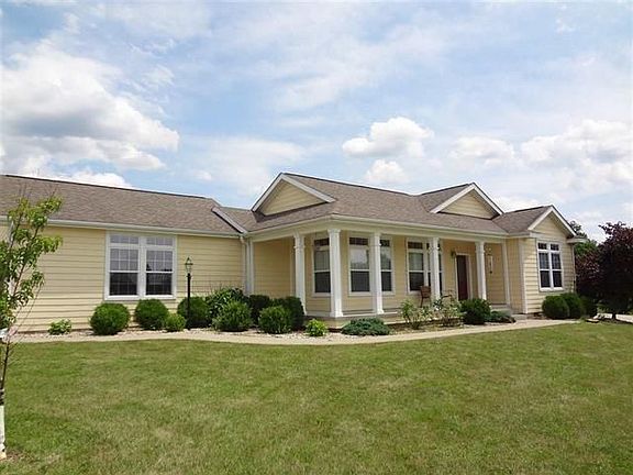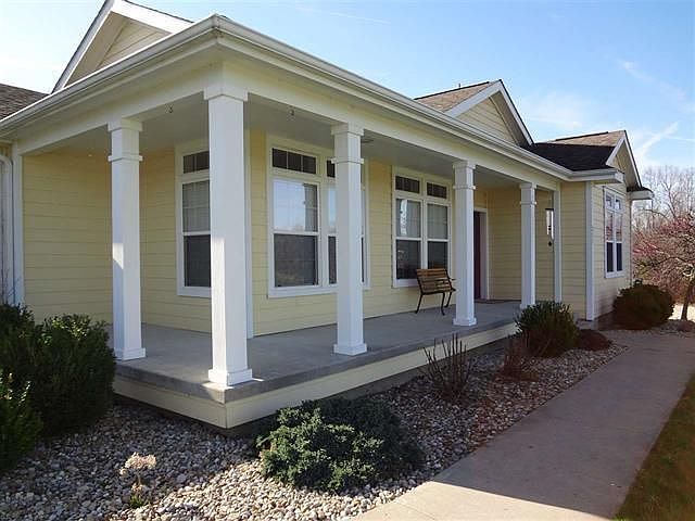 Beautiful and spacious ranch home on 1.31 acres only 20 minutes from Crane Naval Base. This fabulous 3 bedroom, 2 full bathroom home boasts: a gorgeous kitchen with stainless steel appliances including in-wall oven, under-cabinet lighting, and tons of cabinet and counter space; extra large windows with transoms that fill the home with natural light; elevated ceilings; an en suite master bath that includes a garden tub, tile walk-in shower, double sinks and an enclosed water closet; and a roomy master bedroom including a large walk-in closet with built-in custom shelving. Extended garage has 576 square feet and a built-in workbench! Take in the lovely views of your backyard including stately mature trees, or watch the sunset from your wrap around porch.
