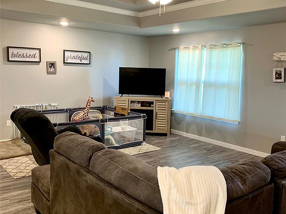 Immaculate brick home sitting on 1/2 acre on the quiet outskirts of Durant. Close to the recreational areas of lake Durant and less than 15 minutes to downtown Durant. 3 bed/2 bath, 1780 sqft and built in 2020. Open concept living room and kitchen featuring crisp white cabinets, granite countertops and a large island. Master bath is a double sink with a separate shower and bathtub! Laundry area with plenty of storage and sink, and garage that will fit two cars. Covered back porch and spacious yard!