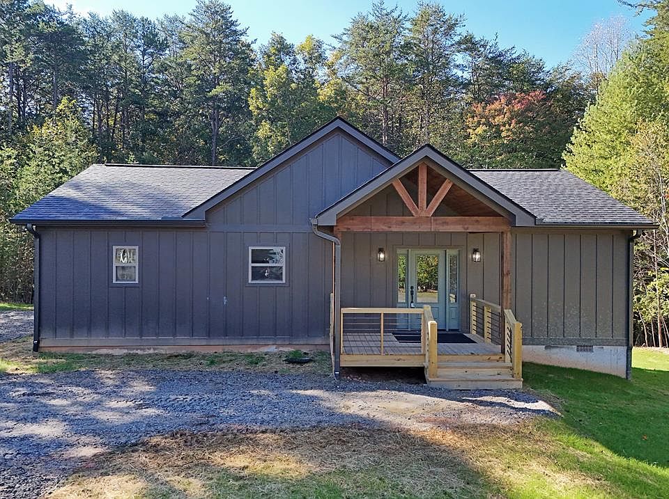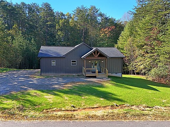 Brand new 2 bedroom, 2 bath mountain retreat situated on 1 acre in the beautiful Blue Ridge Mountains in Blairsville, Georgia. The welcoming front porch features a vaulted rustic wood plank ceiling. Enter to the open concept living space with rustic wood beams, vaulted ceilings and recessed lighting throughout. The large fireplace has a raised hearth with a solid wood mantle and is set in a shiplap accent wall. Large windows offer views from the kitchen and living area. Enjoy luxury vinyl plank flooring and textured walls throughout this new home. The open kitchen features white cabinets, stone countertops, stainless steel appliances and an island with a breakfast bar. The spacious owner's suite features a shiplap accent wall and 2 closets including a walk-in closet. The ensuite bath features a double vanity with stone countertops and a large tile shower. The second bedroom also features a shiplap accent wall, a walk-in closet and an ensuite bath with stone countertops and a shower/tub combo. This home has lots of closet/storage space. The back deck will take your breath away with its vaulted rustic wood plank ceiling and beautiful views. The perfect outdoor space for enjoying the fresh mountain air. Blairsville is a quaint mountain town and is the home of Brasstown Bald, the highest point in Georgia, with its iconic views. Vogel state park is another highlight along with lots of trails, wineries and distilleries. Your mountain adventure starts here.