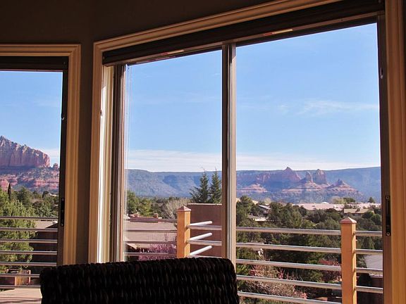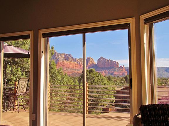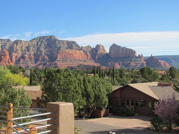 The Bonnie View house! Contemporary Sedona home perched on a hillside lot with spectacular unblockable Red Rock views! Property has undergone a complete remodel including Kitchen, Bathrooms, Flooring, Lighting and Exterior. Three Bedroom three Bath home has an In-Law/Guest suite with separate entrance and kitchenette. A fabulous outdoor BBQ area with Fire and Ice gas fire pit makes this home an entertainers dream! Enjoy the amazing views and weather Sedona offers while cooking on your built in gas grill almost year round. Home has top quality Hunter Douglas window coverings and exterior designer sun shades throughout. Don't delay, schedule a showing today!