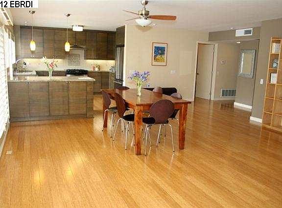Open floor plan. Expansive living-dining room. Kitchen opens to patio. Direct elevator access to unit. Gourmet kitchen with stainless steel appliances, granite counters. Laundry in unit. Bamboo floors. Located in a small building with parking. Near Whole Foods and Lake Merritt.