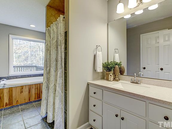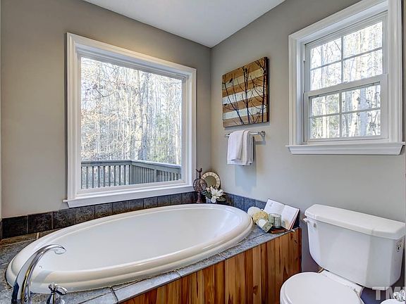 Beautifully updated ranch home! New HARDWOODS, new kitchen TILE and fresh paint! Rocking chair front porch and HUGE 2-level deck on wooded lot- ideal for entertaining! Spacious master and master bath with garden tub and separate tiled shower. A wooded lot to die for!
