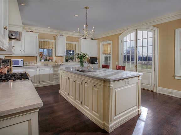 Weatherstone Farm, comprising 128 prime acres in renowned Bedminster Hunt Country, the manor home and a 22-stall state of the art English-style stable. A slate roof, brick facade & limestone entry envelop the Georgian manor home. Artful interior design is expressed in curved walls, tiered moldings, wainscoting, specialty windows, distressed wood floors, 7 fireplaces & high ceilings. Imported English paneling and fireplace surround grace the library. Created in the English style in 2001, the stable at Weatherstone Farm is a state of the art equestrian facility. 22 horse stalls and 2 grooming stalls occupy two wings of the Y-shaped structure. There is a 16,000 sq ft indoor riding ring, a 230 x 110 outdoor ring &12 paddocks. An unparalleled estate property.