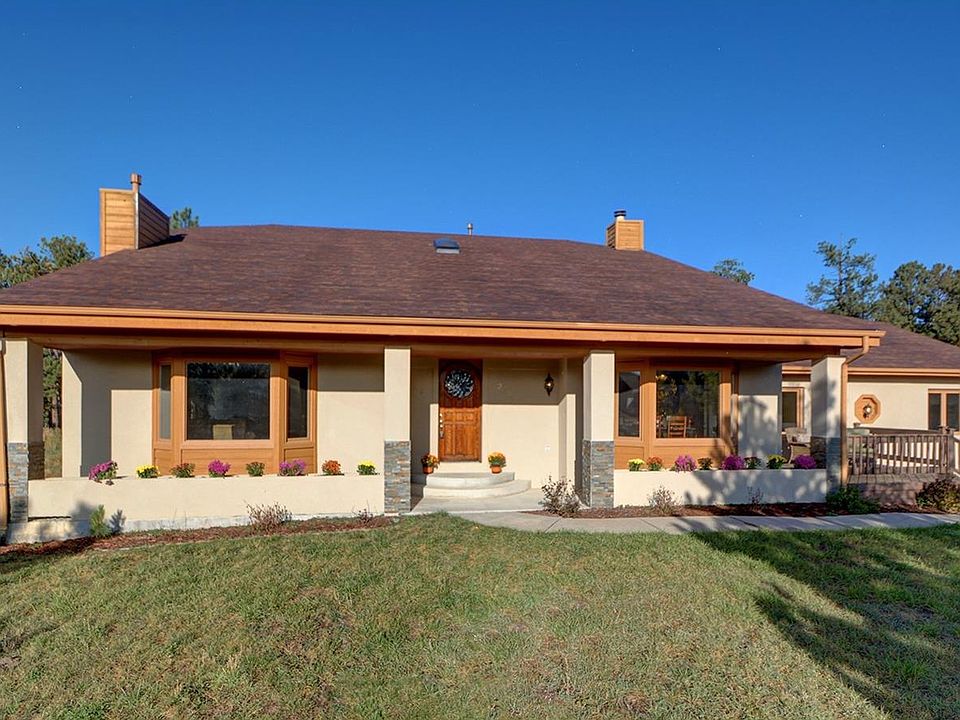 Stunning Woodmoor home on .64 acre with a Brand New kitchen featuring gorgeous white cabinets with soft close doors/drawers, high end Level 4 granite countertops and stainless appliances! Main level master w/ 5 piece bath, double showerheads, slab granite countertops, walk-in closet & French doors to large wrap around deck. New carpet throughout, completely updated bathrooms w/ granite, new vanities & all new lighting! 2 fireplaces, tongue & groove ceiling in living room, vaulted ceilings, skylight in office & 3 bedrooms on upper level. Neutral Colors, separate dining room for entertaining and stone accent walls in kitchen add to the cozy, Colorado feel of this lovely home! Huge WALK OUT basement w/ wet bar, craft room, bed/bath. Large outdoor deck in rear & a deck in front allow for ample outdoor space. Stucco and stacked stone front exterior, Cul-de-sac location, and 3 car garage with built-ins and a finished floor. A truly beautiful home that is PRICED TO SELL!