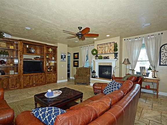 Awesome open floor plan with tile flooring throughout. Large floor to ceiling built in entertainment center in living room. Gas fireplace with mantel. Solid surface countertops in kitchen with a raised breakfast bar. This home features an eat-in kitchen as well as a separate dining room and a bonus room. 4 oversized bedrooms with nice closet storage. Great master suite with lighted tray ceiling, walk in tile shower, large closet, dual vanities and jetted tub. Great subdivision with pool.