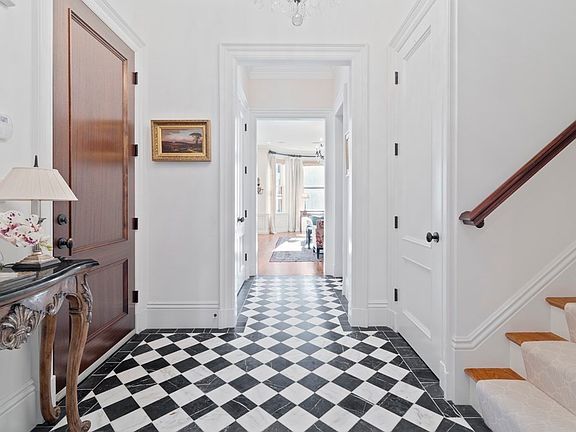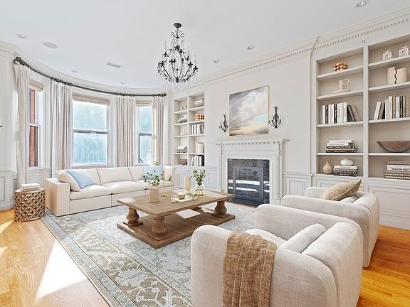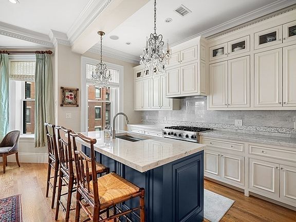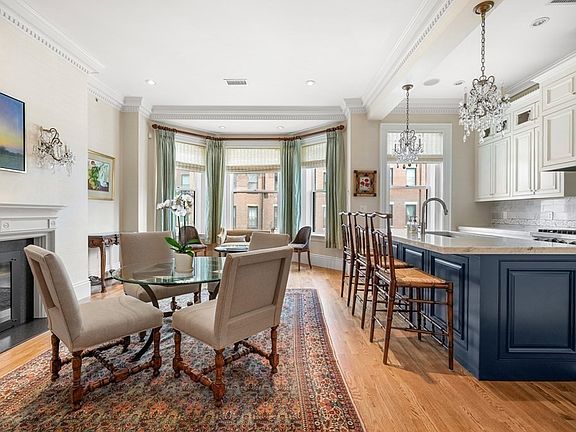 Magnificent three-bedroom residence in an extra wide, pristine, elevator Brownstone on the sunny-side of Marlborough Street. This sophisticated second and third floor duplex boasts high ceilings on both levels, three fireplaces, and direct elevator access to both floors. The first floor features an elegant marble foyer, grand living room facing Marlborough Street, and a recently renovated custom kitchen open to an informal family/dining area. The second floor boasts a luxurious primary suite equipped with extensive closets and a marble en-suite bath with double vanity. Two additional bedrooms- one with adjoining bathroom and a Juliet balcony- create a private wing in this exceptional home. Additional features include hardwood floors throughout, central AC, custom built-ins, detailed millwork, wet bar, laundry room, and one direct-access deeded parking space.