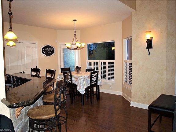 Located on a corner lot this beautiful home has so much to offer. There are 4 bedrooms, one on the first floor next to a full bath, and a master on the 2nd floor with beautiful ceiling detail and a spa like master bath. All bedrooms have large closets and are spacious. This home was a former model home for Perrino builders so it has special touches and upgrades such as solid doors, stone columns in the dining/foyer area, a coffered ceiling, a two story fireplace and wall of windows in the family room. Custom shutters are on all of the first floor windows, the eat-in, gourmet kitchen flows into the formal dining area which features a tray ceiling with crown molding and wainscoting. The laundry room is located on the 2nd floor for added convenience. The basement was just finished in late 2017 and it is fabulous. It has two walls that are finished in reclaimed barn wood (the picture of the barn is in the basement), a wet bar area with copper sink, tons of storage hidden behind a wall of doors, a hidden utility sink for those special projects and a walk out to a patio area. Conveniently located on the Hudson/Streetsboro border you have easy access to quaint shops, big box stores and major highways.