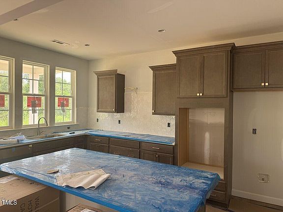 Discover an exceptional lifestyle in this beautifully designed home, conveniently located just minutes from the White Oak Shopping Center and only 15 minutes from vibrant Downtown Raleigh. As you enter, the spacious open-concept layout invites you in, seamlessly connecting the kitchen, eat-in area, and great room—perfect for relaxing or entertaining. The kitchen features stylish burlap cabinets and elegant white quartz countertops, making it the heart of your home and a gathering place for family and friends. The first floor also includes a dedicated office space, ideal for enhancing productivity. Upstairs, you'll find three generously sized secondary bedrooms, each focused-on comfort, along with a versatile flex room great for entertaining, and leads into a stunning balcony for outdoor relaxation. The impressive primary suite showcases a box ceiling and a luxurious oversized tile shower, elevating your daily routine. This home offers a unique blend of elegance, practicality, and convenience. It's waiting to be your home!
