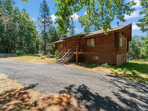 Amazing custom built log home and first time on market! Over 2.51 fenced acres with two entrances, two car garage/shop with new deck Being installed with covered parking underneath. Open Vaulted living room with two bedrooms and one full bath upstairs and downstairs could be another Primary bedroom, family room or guest qtrs that also has a full bath. Concrete block full perimeter foundation, solid wood construction throughout and new laminate flooring. Septic just pumped. Entry gates, rv parking and pasture areas. This is nice! All information deemed accurate but not guaranteed and subject to change at any time. Pictures and videos property of Hommati.