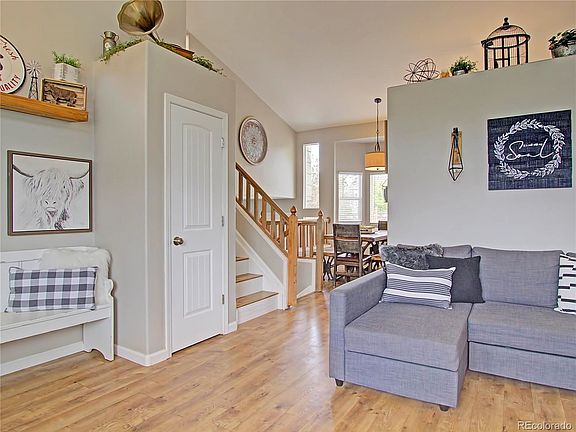 Charming two story farm home in Jackson Creek near the park is ready for a new homeowner... As you enter this charming home one will see hardwood laminate floors throughout the entire home making for easily living. Open main level floor plan is light and bright with living room, kitchen and family room. Kitchen has stainless steel appliances and family room has stone gas fireplace and walks out to patio in the fully fenced backyard. Head upstairs to the three bedrooms all with ceiling fans and located conveniently next to the laundry space. Master bedroom has own private 3/4 bathroom while other two bedrooms have access to second full bathroom. One bedroom has built in space in the closet that is being used as a desk but could also provide great storage for jeans and sweatshirts. Basement has 4th bedroom, second family room/play room with game closet and additional 3/4 bathroom. Great location in Lewis Palmer school district, close to grocery stores, Starbucks, and more.