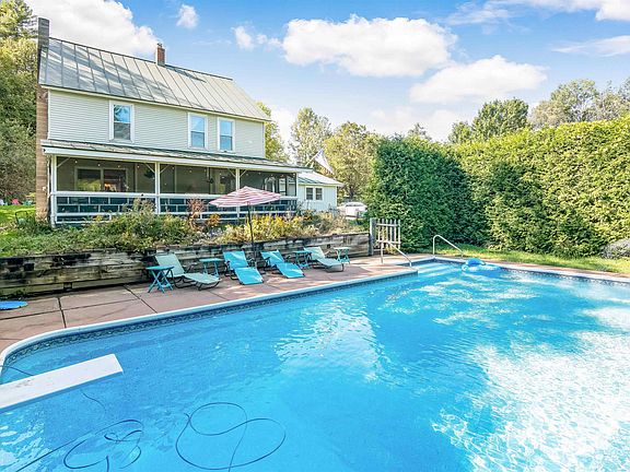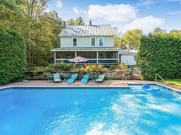 Enjoy the best of Vermont countryside living in this well appointed and charming farmhouse, tucked away in Duxbury. You'll love the outdoor pool and enclosed porch in the summer months, and entertaining in the open dining room and living room year-round. Enter through the front door and into the mudroom. There's plenty of space to store coats and shoes. A cozy den is located off the mudroom. Down the hall reveals the kitchen, with a breakfast nook. The kitchen opens up to the dining room and living room. This is truly the heart of the home, with all the spaces flowing into one another. Natural light fills the space. Access the tranquil enclosed porch from the living room or breakfast nook. Overlooking the in-ground pool, you'll feel the peacefulness of the area all around you. A convenient 1/2 bathroom with laundry completes the first floor. Up the stairs you'll find 4 spacious bedrooms and a full bathroom. Heading up to the 3rd floor, you'll be pleased to find an exquisite primary bedroom with private full bathroom. Completely separate from the rest of the house, this will feel like your private sanctuary. Outdoors, enjoy gardening in the yard or take a walk near the stream on the property. Downtown Waterbury is less than 5 minutes away. Outdoor recreation isn't far, with Sugarbush just 30 minutes away and Stowe Mountain Resort 40 minutes away.