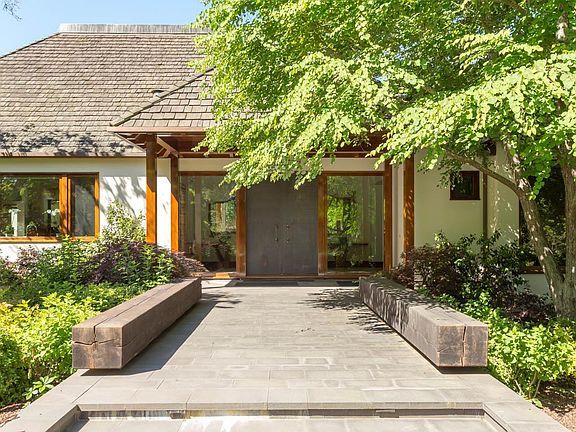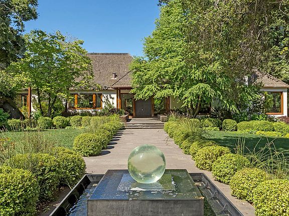 This home is a masterpiece of renovated modern design that stays true to its original design by Joseph Esherick. Woodside's most premier country lane on almost 4 acres. The one-level floor plan is open and flowing with 4 bedrooms, 5.5 baths, 2 offices, a library, and 2 family rooms. Paneled wood ceilings, artistic lighting, and massive windows and glass doors. Magnificent country setting with vast manicured grounds, western hill views, pool and spa, linear fireplace and barbecue center.