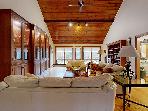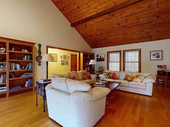 Set on 20 peaceful acres across from the conserved Mud Pond trail network, this thoughtfully designed 2-bedroom, 2-bath contemporary ranch offers comfortable single-level living in a private, nature-filled setting. A welcoming covered porch opens into a light-filled living room with a vaulted ceiling and expansive windows that frame the surrounding landscape. Oak hardwood floors extend throughout the main living areas and bedrooms. The updated kitchen features white cabinets, stainless steel appliances, granite countertops, and a classic subway tile backsplash, with easy access to a relaxing sunroom and back deck. The first-floor primary suite includes a full bath, built-ins, and a changing area with two large closets. A spacious multi-purpose room provides excellent flexibility—perfect for a home business, a cozy family room or a dedicated workout space. Its layout and privacy make it easy to tailor to your lifestyle. The finished walkout lower level adds remarkable versatility with a den, office, laundry room, home theater, two cedar closets, storage areas, and another multi-purpose room with a garage door—ideal for gardening projects, workshop needs, pet care, or specialty vehicle storage. Additional highlights include a spacious two-car attached garage, large shed, and generator. Surrounded by nature yet close to Williston conveniences, this property offers a rare blend of privacy, easy living, and room to enjoy the hobbies and lifestyle you love.