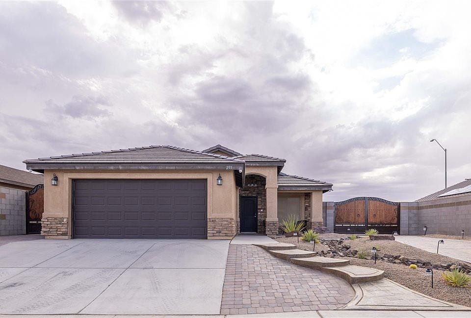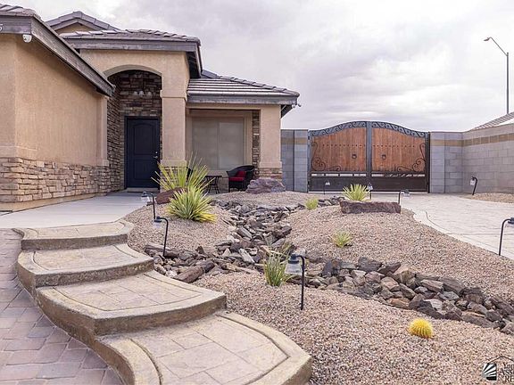 Are you in search of a charming pool home with great curb appeal in San Luis, AZ? This home is adorned with veneer rocks, pavers, custom cement work, and a lovely desert landscaping with a rock waterfall in the front. The backyard features an outdoor kitchen with a built-in grill, decorative veneer rock, a large pool that wraps around with a Cardinal Logo & a Spa. The home also includes plenty of concrete, water drains, & pavers. It's fully fenced with 2 wrought iron single & double gates. A must-see!
