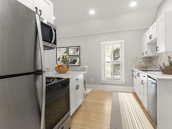 Absolutely gorgeous property with fantastic, treed lawn. Great 1890's house with tons of character that has been completely remodeled with bamboo floors, granite counters, stainless appliances, central A/C, open floor plan, huge bathroom, clawfoot tub, etc. Property also has two office rooms that could be used for many different things. Also has a garage with a vintage wood-burning stove and a fast charge hookup for your electric car. Fantastic location. Walk to everything! Come see this property and you'll love it! This property is advertised by Keller Williams Agent Amber Dregalla 3 months to one year