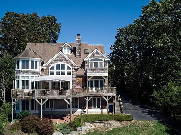 Outstanding on all counts!! Mumford Cove is a quiet seaside association community with a beautiful beach, deep water docks as well as a lagoon with docks, a playground and tennis courts. This shingle style house has high ceilings and a gorgeous floor to ceiling window in the living room that overlooks the beach and the cove and across to Bluff Point. The stunning kitchen was redone just one year ago. There is a master bedroom suite on the main floor and another on the second floor. The second floor has a stunning cherry office/library which can also be used as a bedroom and the third floor has a bedroom/bath suite. The lower level can be for family entertainment or it can also be a wonderful walkout in law apartment. Very flexible space here. Beautifully maintained . You will love it so call for an appointment right now 2021 occupancy